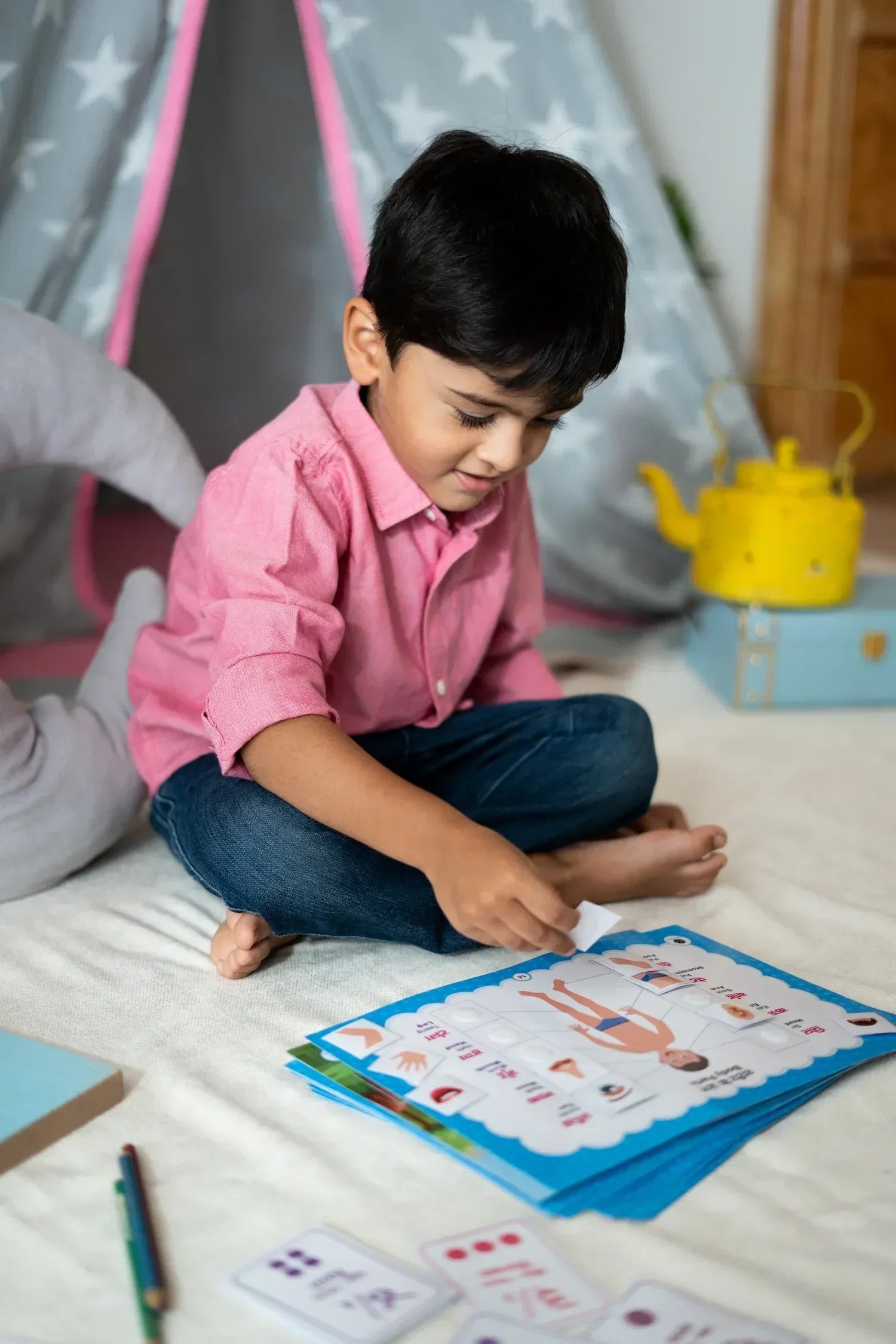 Built with Velcro activity sheets and vibrant flashcards, this Hindi learning kit covers essential topics like Swar (vowels) and Vyanjan (consonants), days of the week, months of the year, seasons, national symbols of India, family relationships, and human body parts. It also includes bright flashcards for colors, shapes, and numbers — helping children reinforce key concepts through active participation and play‑based learning.
